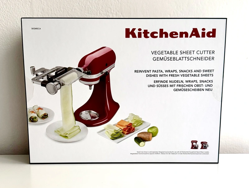 KitchenAid 5KSMSCA Plátkovač zeleniny je praktické příslušenství ke kuchyňským robotům KitchenAid, určené pro přesné krájení ovoce a zeleniny na tenké nebo silnější plátky. Suroviny se upevňují na otočný váleček, který je poháněn přímo robotem, a nerezové čepele zajišťují rovnoměrné a konzistentní krájení bez nutnosti ručního tlaku.